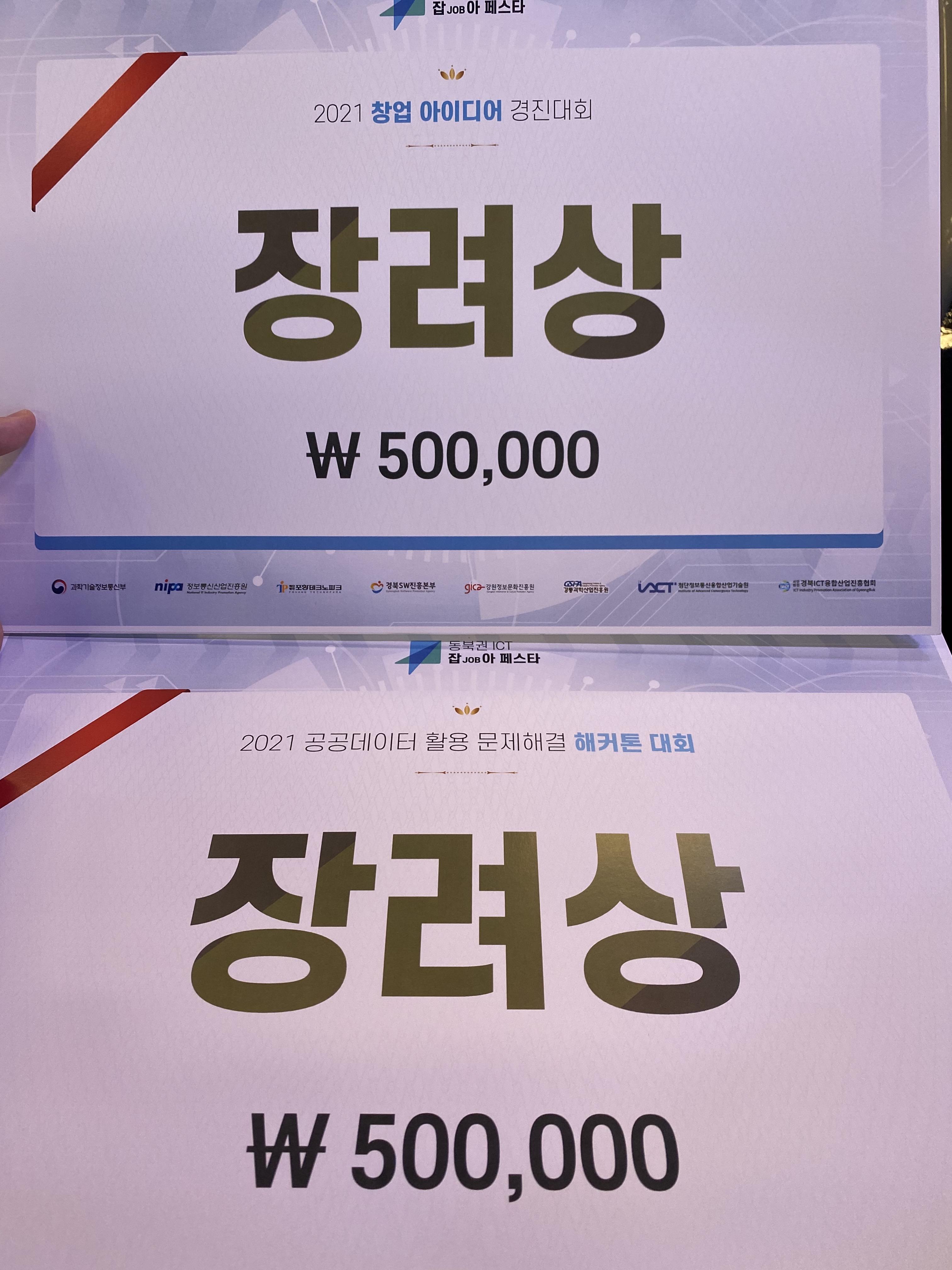 아쉽게 욕심내서 두 대회에 참가했는데 우리처럼 창업 아이디어와 해커톤 둘다 참여한팀은 우리팀이 유일했다...