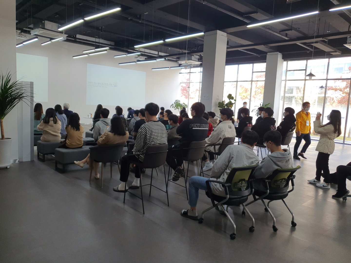 마지막날 해커톤 대회에서 각팀들 고령화지수 예측 모델에 대한 PPT 발표중...