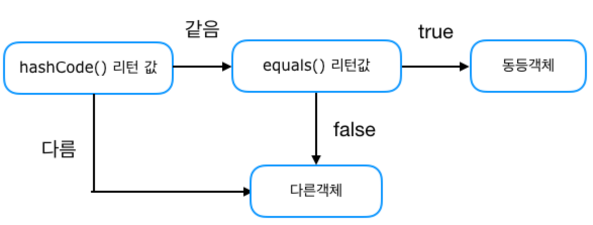 - equals 메서드를 재정의할 때는 반드시 hashCode도 재정의
