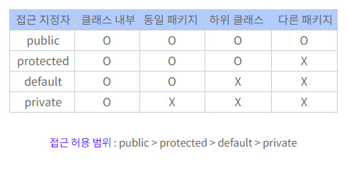 - Privte(자기 자신 클래스 내부)
